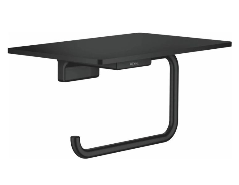 Держатель для туалетной бумаги с полочкой Rose RG1805H, черный.