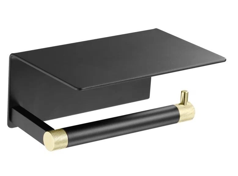 Держатель для туалетной бумаги с полочкой Rose RG3005H-1 золото/чёрный купить