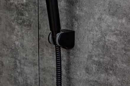 Настенный держатель для ручного душа Orange O-Shower OWB-A-B с регулировкой угла наклона (в шести позициях). Резиновая прокладка во внутренней части держателя обеспечивает надежную фиксацию лейки. Держатель выполнен из высококачественного пластика с черным матовым покрытием устойчивым к появлению царапин и потертостей.
