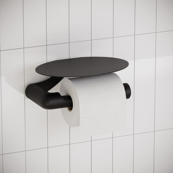 Каждый предмет из новой коллекции NOA минималистичен на вид и максимально функционален, благодаря чему способен выгодно подчеркнуть любой современный или классический дизайн. Коллекция представлена всеми необходимыми аксессуарами для создания единого стиля туалетной или ванной комнаты – с ними ежедневный уход станет еще более комфортным. Настенный держатель трендового черного цвета будет элегантно смотреться в темных интерьерах и мягко балансировать яркие, цветные. Держатель позволяет легко производить замену рулона, удобен в использовании и способен решить сразу несколько задач. Отличительная особенность аксессуара – наличие небольшой овальной полочки, на которой будет удобно разместить освежитель воздуха или телефон.