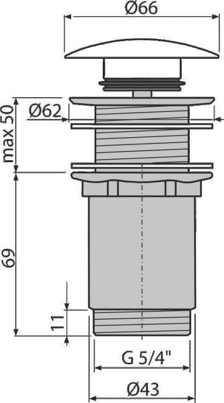 Донный клапан для раковины AlcaPlast клик-клак 5/4" цельнометаллический с большой белой заглушкой A395B купить