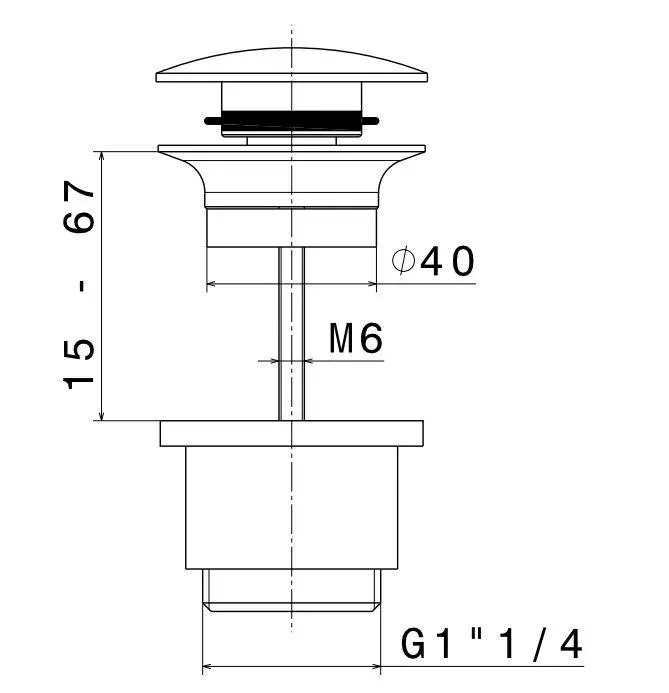 Донный клапан с системой "клик-клак" 1"1/4. Минимальная высоты 15 мм, максимальная - 67 мм. Внимание: для чистки черных и цветных изделий можно применять только мягкую губку и мыльный раствор. Использование моющих и абразивных средств запрещено.