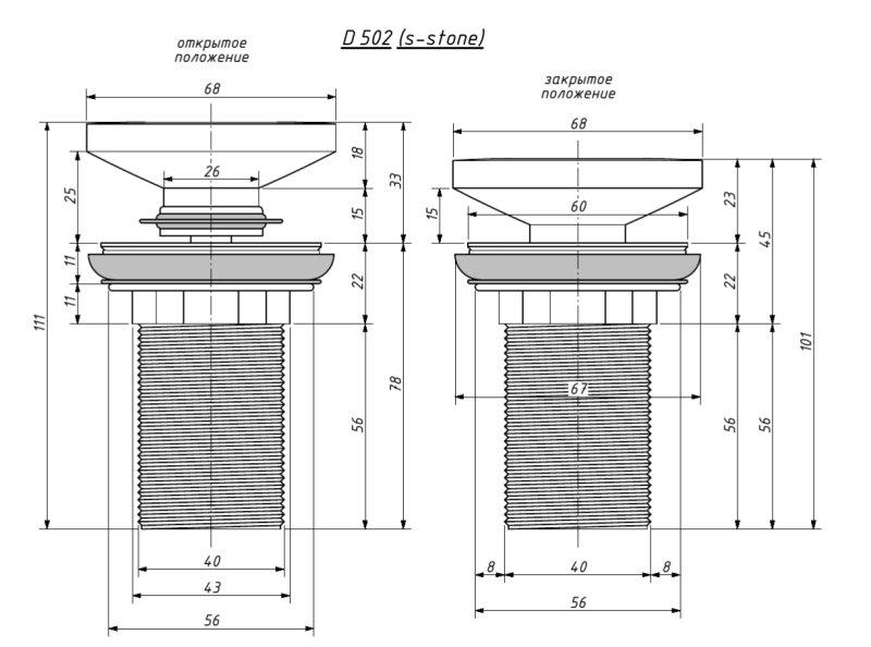 Аккуратная крышка клапана становится естественным продолжением дна, не слишком выделяясь на фоне всей ванны или раковины. Она может быть выполнена как из материала S-Stone, так и материала S-Sense с матовой или глянцевой поверхностью.