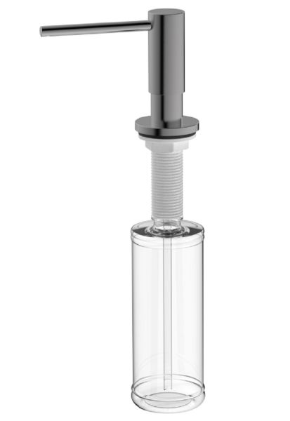 Дозатор встраиваемый для жидкого моющего средства Raglo R720.02.09 - отличный аксессуар для вашей кухни. Устанавливается в отверстие в столешнице Ф25 - 35 мм и фиксируется при помощи прижимной гайки на резьбе, рядом со смесителем для кухни. А со смесителями R80.62.09, R81.64.09, S70.61.09 составит прекрасный дуэт. Потому что выполнены они в одном цвете - графит. Толщина столешницы возможна от 1 до 5 см. Головка дозатора из латуни, колба объемом 350 мл из прочного пластика. Нажатие мягкое, носик дозатора поворачивается на 360 градусов. Дозатор легко монтируется на столешницу и весьма удобно и просто происходит пополнение моющего средства. Дозатор превосходно организует пространство у мойки и несомненно украсит ее.