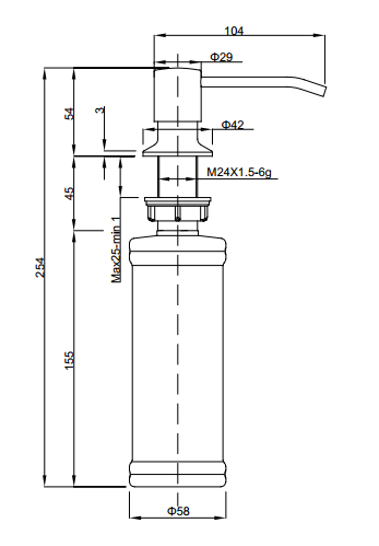 Комплектация: емкость для моющего средства, дозирующий механизм, крепление, декоративный колпачок."