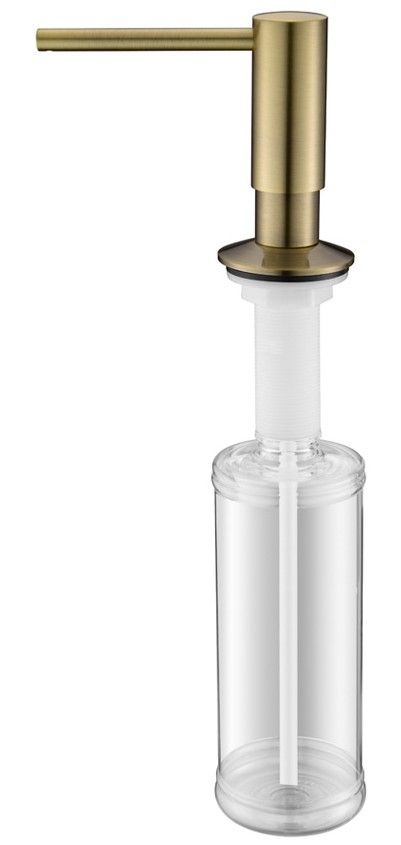 Дозатор для кухни и ванной, артикул D004-BRДозатор для кухни или ванной, встраиваемый, объемом 350 мл, матовая поверхность, изготовлен из латуни и пластика.