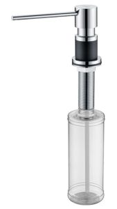 Дозатор для кухни и ванной, артикул D003-401Дозатор для кухни или ванной, встраиваемый, объемом 350 мл, матовая поверхность, изготовлен из латуни и пластика.