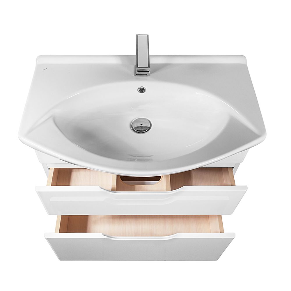 Напольная классическая коллекция в 4-х размерах с 2-мя выдвижными ящиками. Верхний ящик с органайзером Во всех предметах используются механизмы с доводчиками Hettich. Хромированные ножки. В комплект можно докупить зеркальные шкафы, пенал, полупенал
