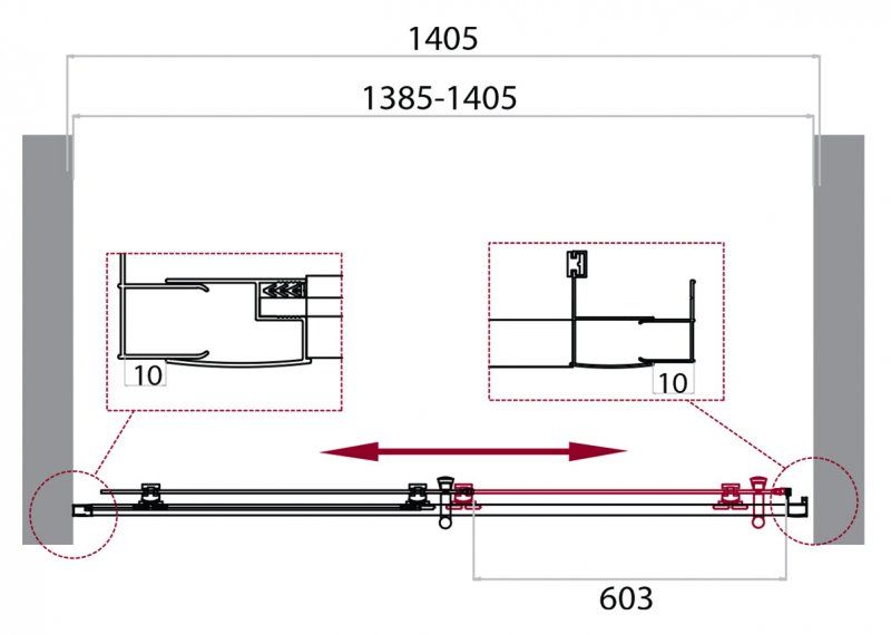Регулировка ширины: предусмотрена за счет боковых профилей