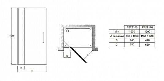 Душевая дверь Jacob Delafon CONTRA E22T100-GA 100*200