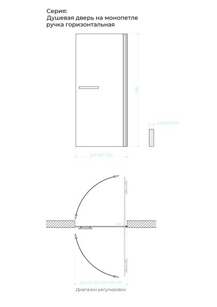 Стеклянная душевая дверь на монопетле является стильным и функциональным аксессуаром для ванной комнаты. Монопетля обеспечивает плавное и бесшумное открывание и закрывание двери. Закаленное стекло, из которого изготовлена дверь, обладает высокой прочностью и устойчивостью к механическим повреждениям и воздействию влаги. Закаленное стекло, цвет графит матовый, толщина 8 мм 1950х845 мм - 1 шт.