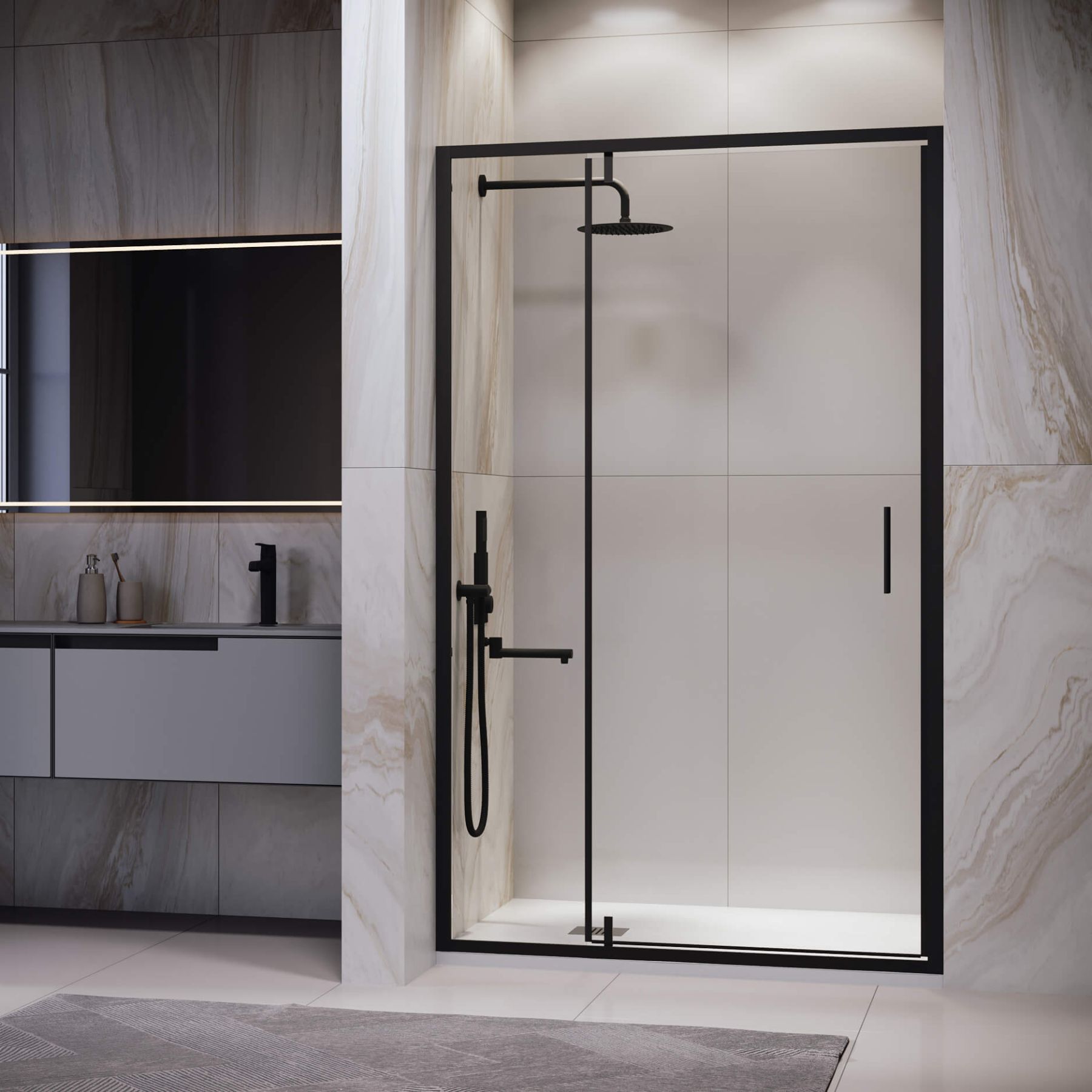 Элегантные стеклянные двери с пристенными профилями придают ванной комнате изысканность и строгость. Модели оснащены маятниковой петлёй, с защитой от провисания и подъёмом двери при открытии. Такой системой будет особенно удобно пользоваться если дверь установлена на плитку с встроенным трапом. Изделия оснащены Распашные двери открываются как наружу, так и внутрь, что обеспечит максимальный комфорт в процессе использования душевого пространства.Благодаря разнообразию размеров, подходят практически каждому клиенту.Ключевые характеристики: