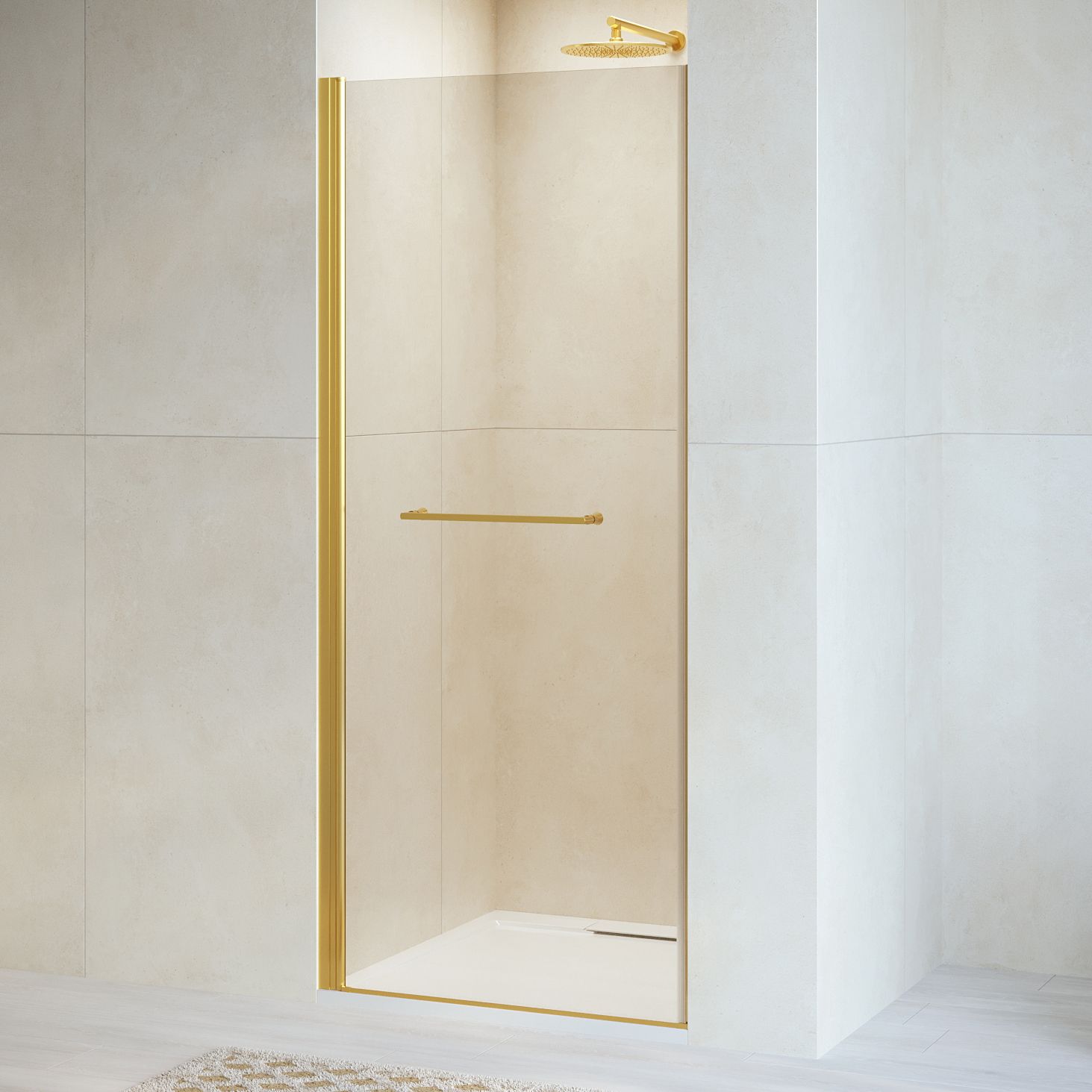 Душевая дверь распашная с маятниковой петлей (открытие только наружу). Маятниковые петли с функцией подъема двери. В комплекте нижняя пороговая планка. Стальная ручка - полотенцедержатель. Трап или поддон приобретается отдельно.
