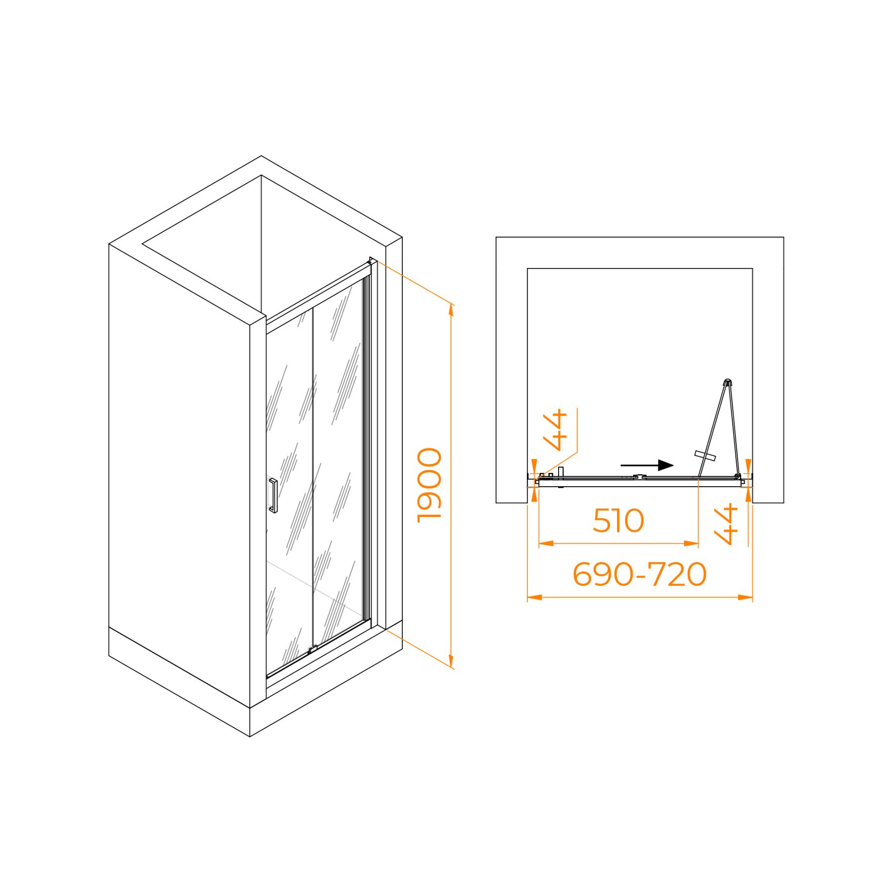 Душевая дверь RGW PA-21B состоит из 2-х подвижных секций стекла, которые при открывании складываются по типу "гармошки". Такая система открытия позволяет получить широкий размер входа, при небольшой ширине изделия. Трап или поддон приобретается отдельно.