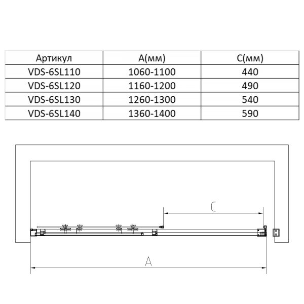 Душевая дверь Vincea Slim 8mm VDS-6SL110CLB, 1100, черный, стекло прозрачное купить