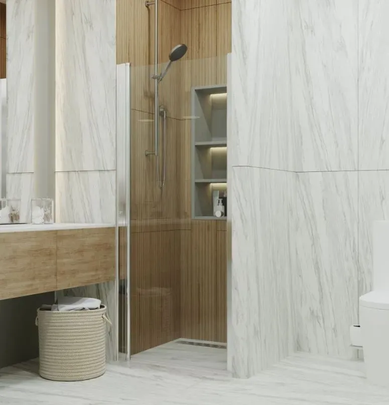 - Исполнение полотна двери: прозрачное закаленное стекло, толщиной 5 мм.