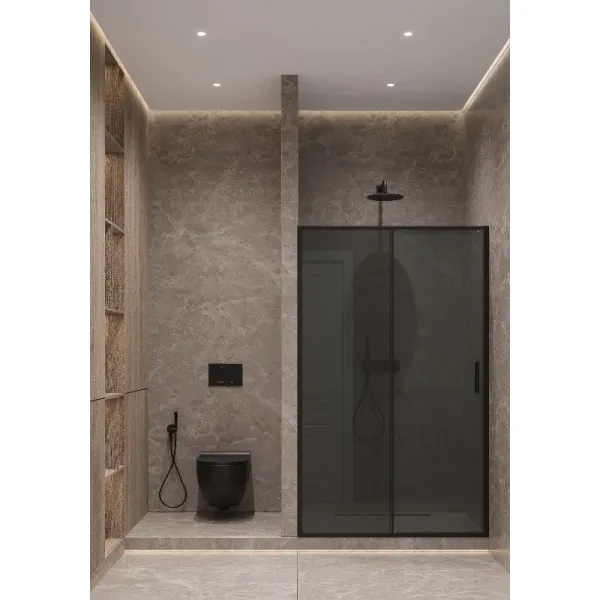 Душевая дверь Timo T03, 120 х 195 см, стекло тонированное, профиль черныйДушевая раздвижная дверь Timo является изысканным и практичным вариантом для вашей ванной комнаты. Этот стильный элемент выполнен из высококачественных материалов и предлагает максимальный комфорт, и удобство во время водных процедур. Надежные роликовые механизмы обеспечивают плавное и бесшумное движение двери, что подтверждает её долговечность и стабильность эксплуатации. Дополнительно, конструкция включает мягкие уплотнители, которые предотвращают протекание воды. Раздвижная душевая дверь станет отличным акцентом вашей ванной комнаты.