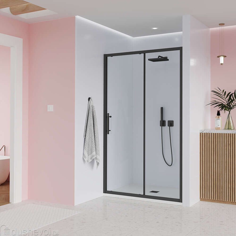 Душевая дверь Veconi Evo 100 B, 1700x1950, черный матовый, стекло прозрачное купить