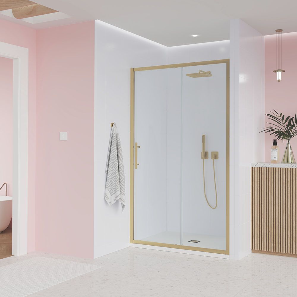 Душевая дверь Veconi Evo 100 G, 1600x1950, золото брашинг, стекло прозрачное купить