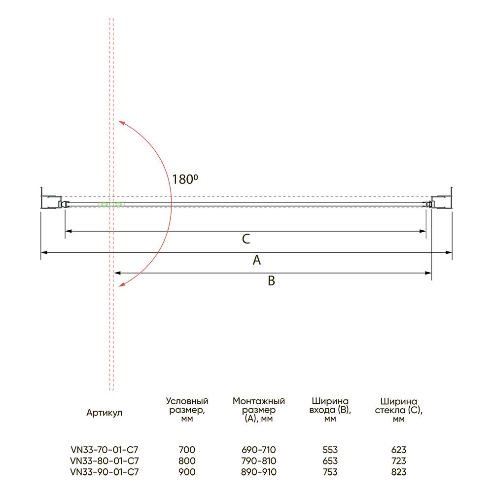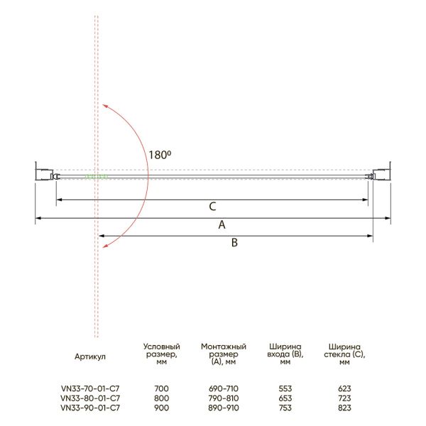Душевая дверь Veconi Vianno VN-33B, 900x1950, черный, стекло прозрачное купить