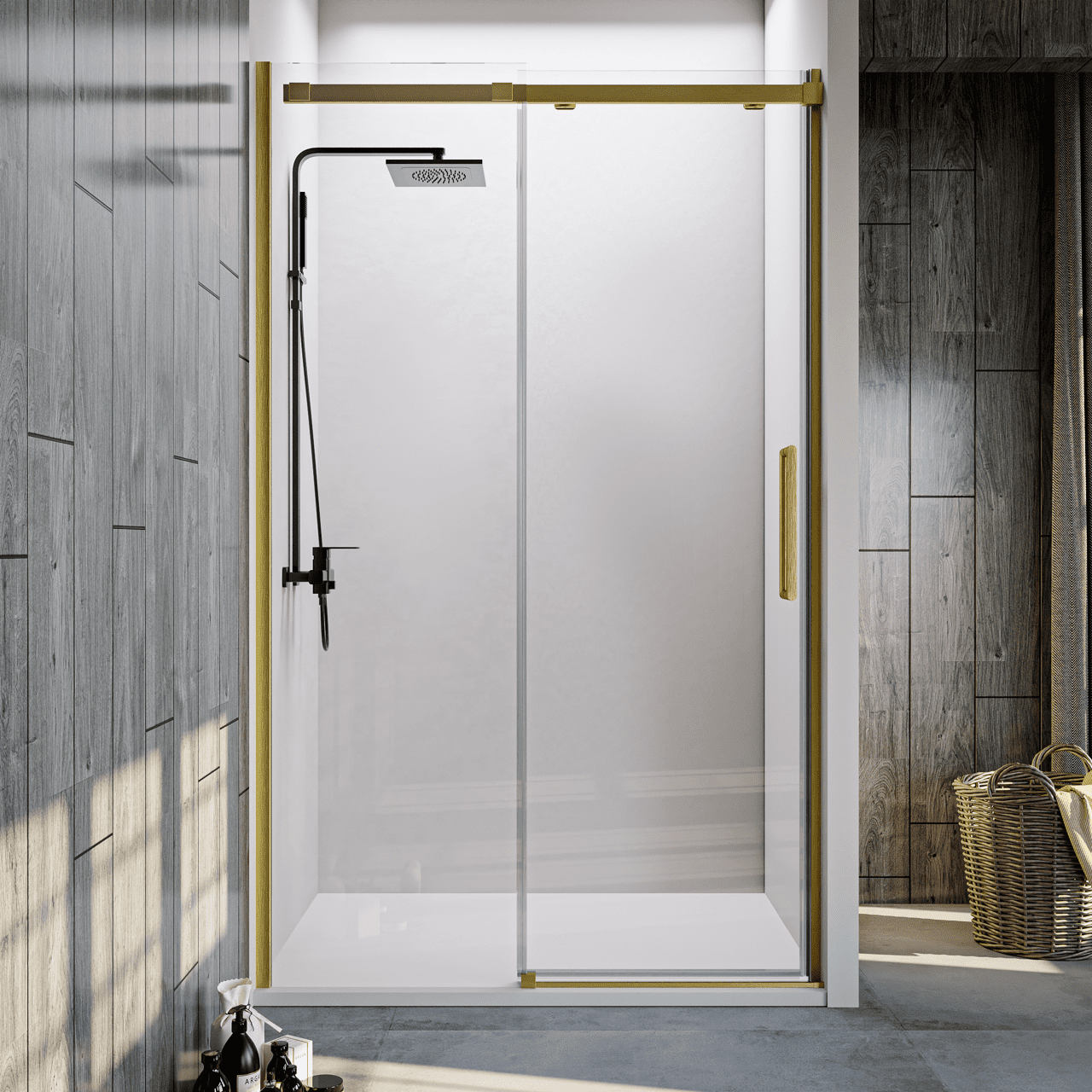 Душевая дверь Veconi Vianno VN-70G, 1400x1950, Брашированное золото, стекло прозрачное купить