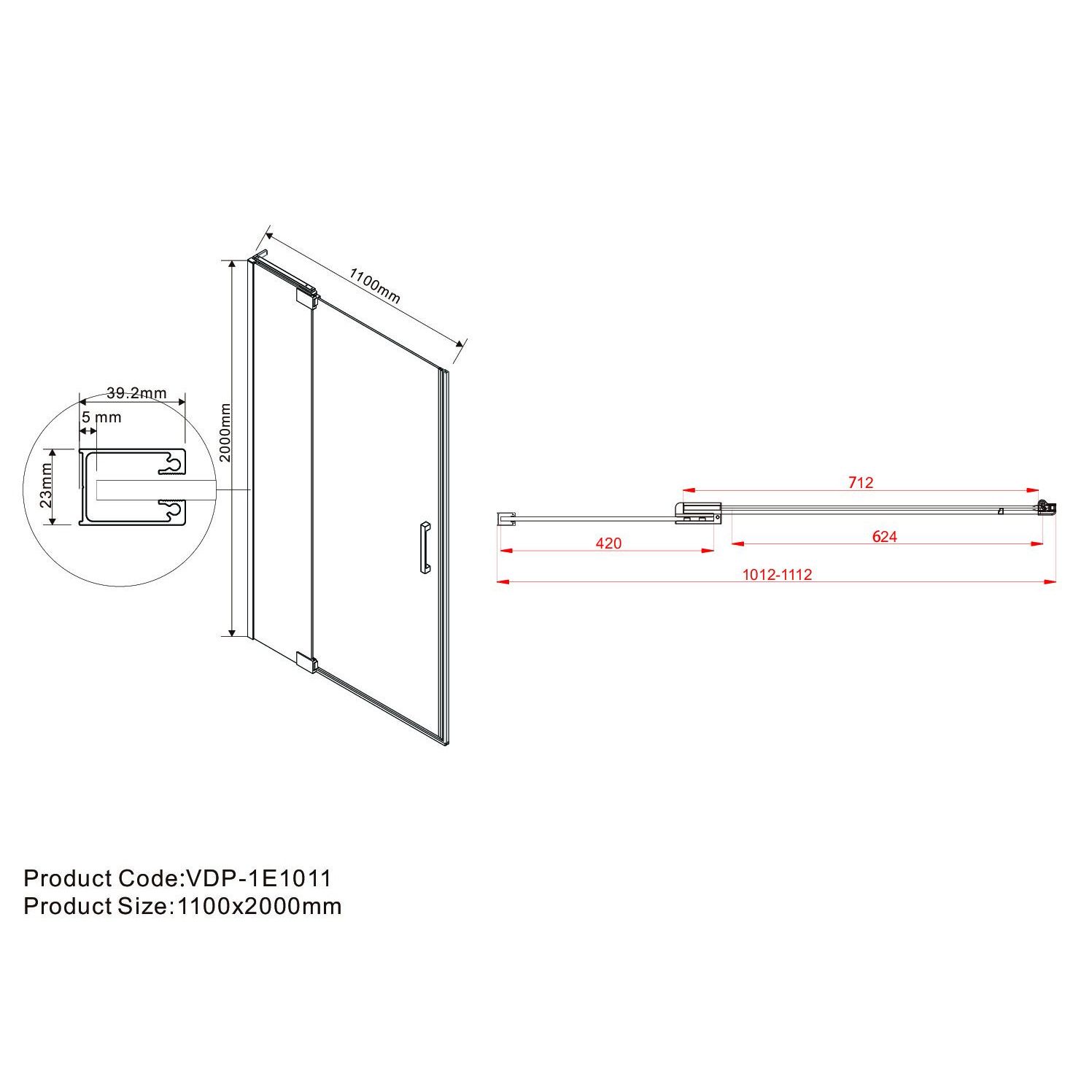 Душевая дверь Vincea Extra VDP-1E1011CLB 100/110 смОсновные характеристики:Душевая дверь