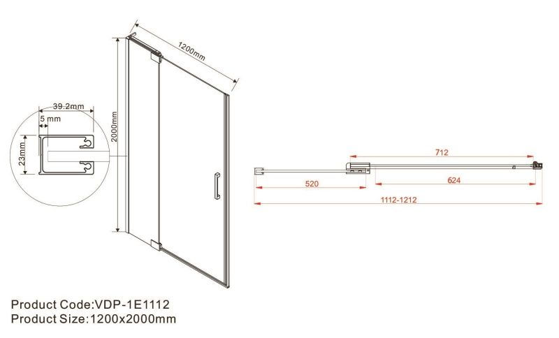 Душевая дверь Vincea Extra VDP-1E 110/120 см распашная, стекло тонированное, профиль черный, VDP-1E1112CGBДушевая дверь