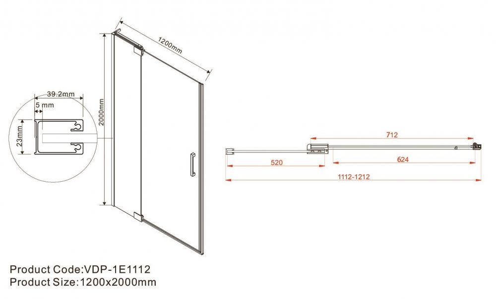 Душевая дверь Vincea Extra VDP-1E 110/120 см распашная, стекло прозрачное, профиль черный, VDP-1E1112CLBДушевая дверь
