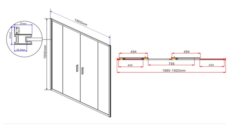 Душевая дверь Vincea Garda VDS-1G2 190 см раздвижная, стекло шиншилла, профиль хром, VDS-1G2190CHДушевая дверь