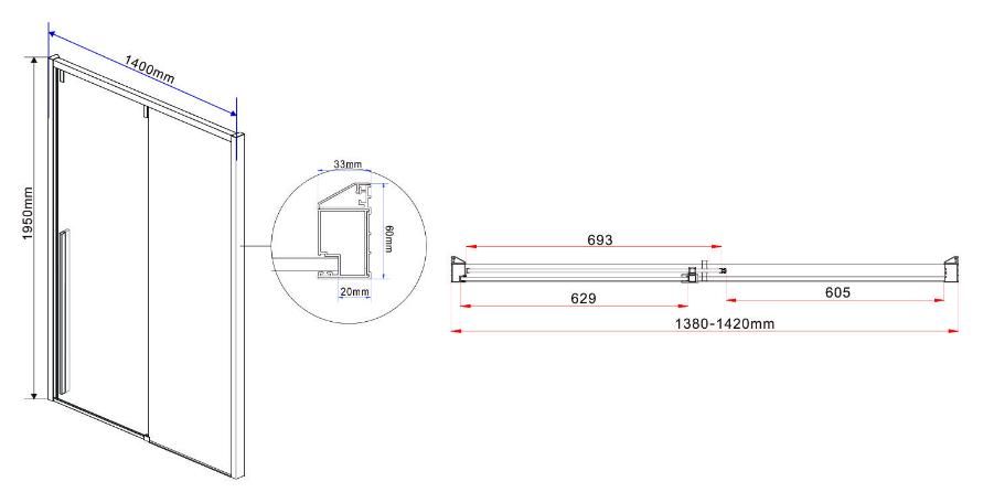 Душевая дверь Vincea Lugano VDS-1L-1 140 см раздвижная, стекло прозрачное, черный, VDS-1L140CLB-1Душевая дверь