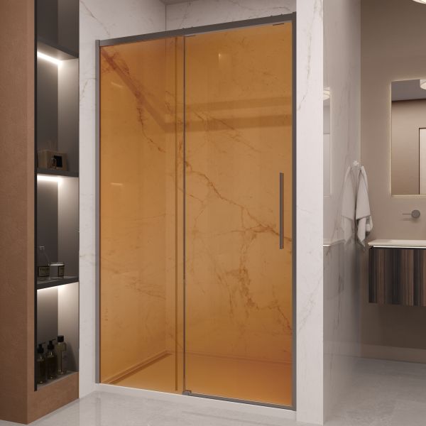 Душевая дверь Vincea Stella VDS-1ST120GSGM, 1200, вороненая сталь, стекло янтарь купить