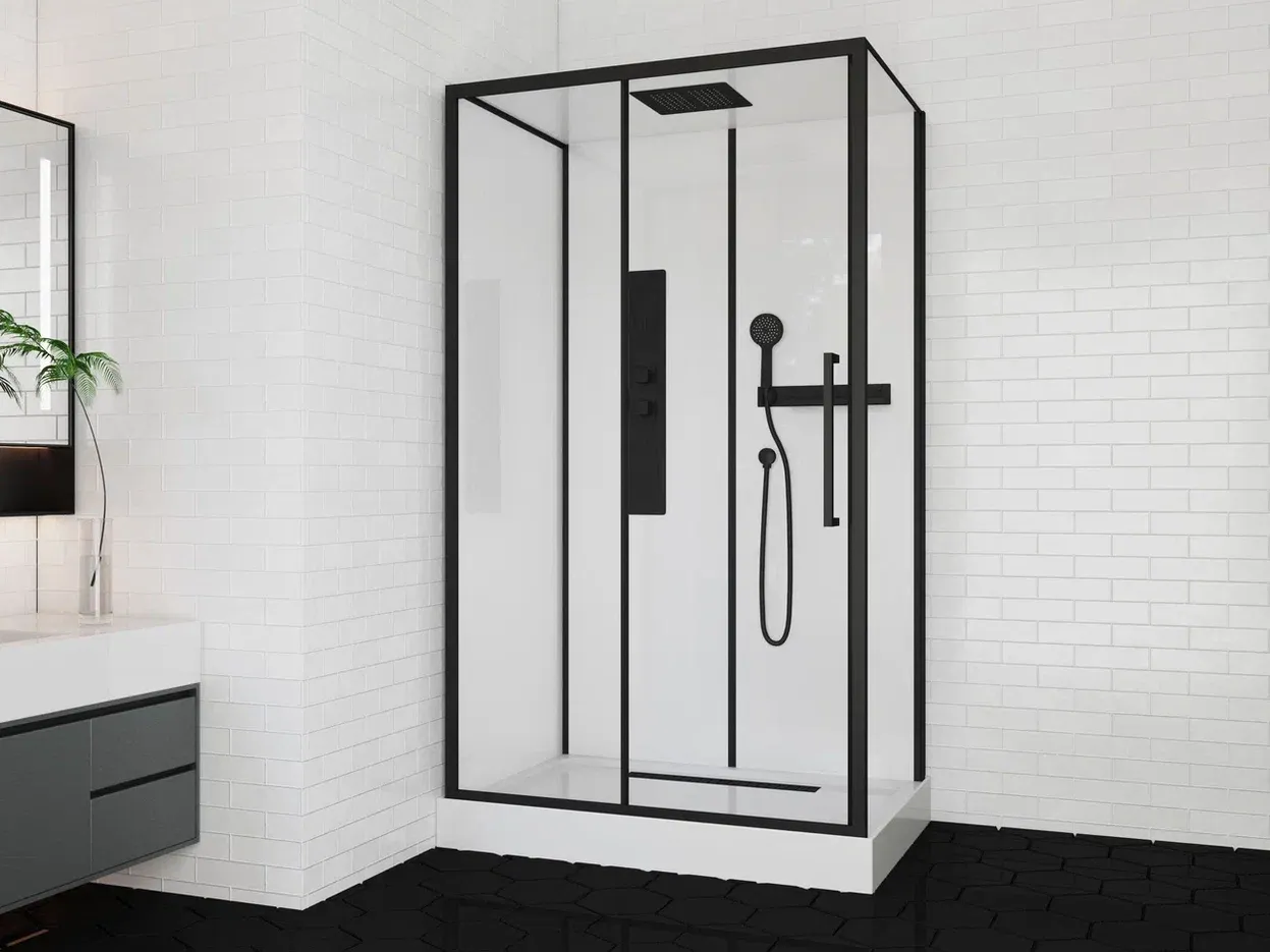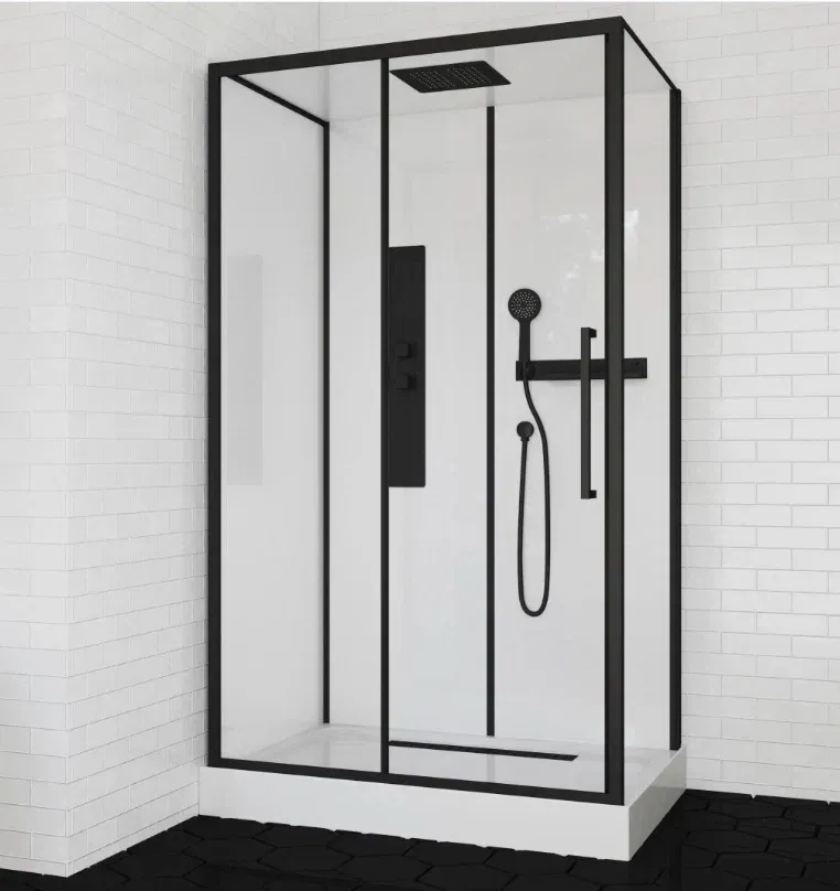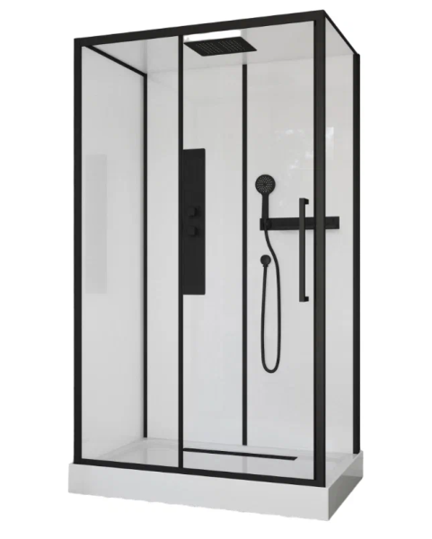 Душевая кабина AMI 120 CeruttispaРазмер (120x80x210)- Поддон из ABS-пластика, белый, высотой 12 см;- профиль - черный алюминиевый;- стекло переднее закаленное прозрачное, толщиной 6 мм;- боковое - закаленное прозрачное, толщиной 5 мм;- заднее - супер белое закаленное, толщиной 5 мм,Комплектация:- смеситель;- полка;- держатель ручного душа;- пластиковые ручки черные, в цвет профиля;- двойной верхний и одинарный нижний ролики;- сифон анти-запах в комплекте Внимание! Производитель оставляет за собой право вносить изменения в конструкцию и комплектацию моделей без предварительного уведомления!