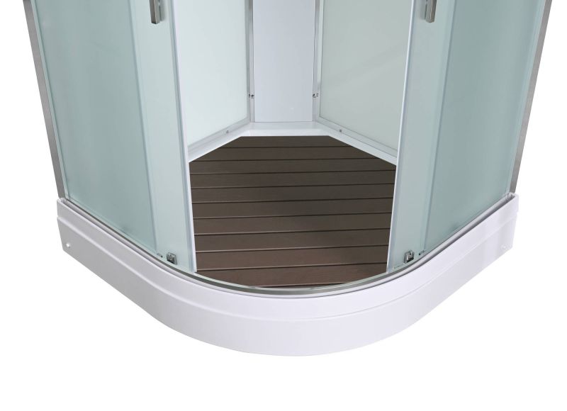 Стильная душевая кабина AvaCan EM2010 сочетает в себе высокую функциональность, практичность и надежность. При изготовлении применяется безопасное закаленное стекло толщиной 5 мм (матовое), надежно фиксируемое алюминиевым профилем. Сборка без силикона (увеличивает срок службы), внутренняя сборка(облегчает установку и ревизию; позволяет установить в ограниченном пространстве), смеситель резьбовой (без хомутов). Съемный экран поддона (позволяет осуществлять ревизию сифона). Цвет профиля хром. Двойные металлические ролики дверей (увеличивают срок службы).В комплекте : душевая штанга, две полочки , тропический (верхний) душ, арома-лейка с витамином С (картридж съемный),полимерная вставка в поддон(имитация дерева),сифон, ручки дверей из нержавейки , двойные ролики .