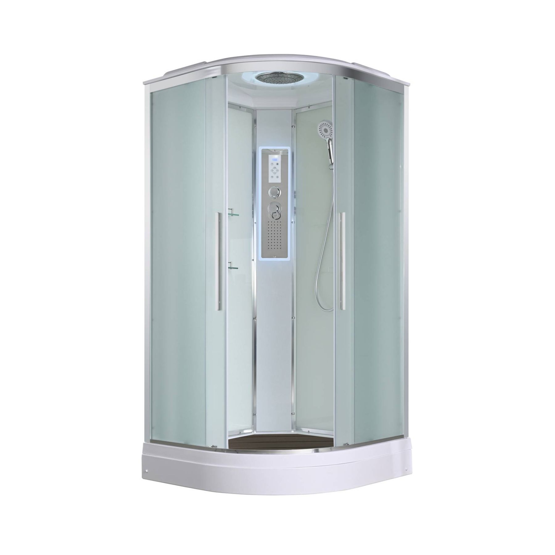 Стильная душевая кабина AvaCan EM2010LED сочетает в себе высокую функциональность, практичность и надежность. При изготовлении применяется безопасное закаленное стекло толщиной 5 мм (матовое), надежно фиксируемое алюминиевым профилем. Сборка без силикона (увеличивает срок службы), внутренняя сборка(облегчает установку и ревизию; позволяет установить в ограниченном пространстве), смеситель резьбовой (без хомутов). Съемный экран поддона (позволяет осуществлять ревизию сифона). Цвет профиля хром. Двойные металлические ролики дверей (увеличивают срок службы).В комплекте : душевая штанга, две полочки , тропический (верхний) душ, арома-лейка с витамином С (картридж съемный),полимерная вставка в поддон(имитация дерева),сифон, ручки дверей из нержавейки , двойные ролики ,пульт сенсорный(Блютуз ,LED подсветка ,радио ,вытяжка),гидромассаж спины.