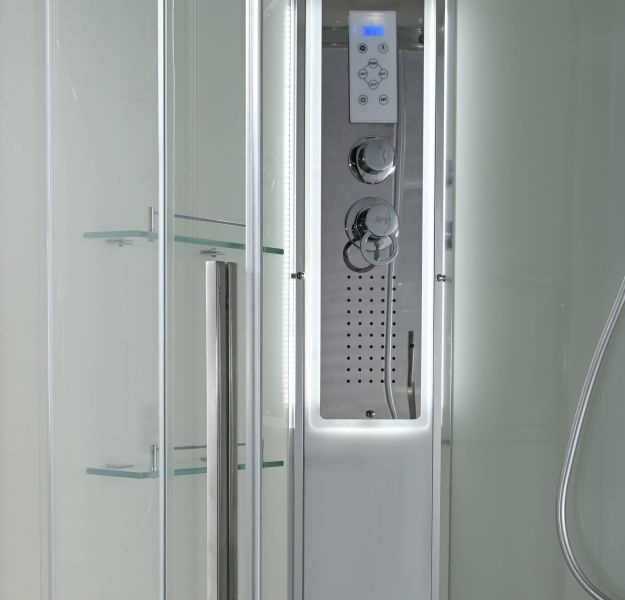 Стильная душевая кабина AvaCan EM2812LLEDT сочетает в себе высокую функциональность, практичность и надежность. При изготовлении применяется безопасное закаленное стекло толщиной 5 мм (прозрачное), надежно фиксируемое алюминиевым профилем. Сборка без силикона (увеличивает срок службы), внутренняя сборка(облегчает установку и ревизию; позволяет установить в ограниченном пространстве), смеситель резьбовой (без хомутов). Съемный экран поддона (позволяет осуществлять ревизию сифона). Цвет профиля хром. Двойные металлические ролики дверей (увеличивают срок службы).В комплекте : душевая штанга, две полочки , тропический (верхний) душ, арома-лейка с витамином С (картридж съемный),полимерная вставка в поддон(имитация дерева),сифон, ручки дверей из нержавейки , двойные ролики ,пульт сенсорный(Блютуз ,LED подсветка ,радио ,вытяжка),гидромассаж спины.
