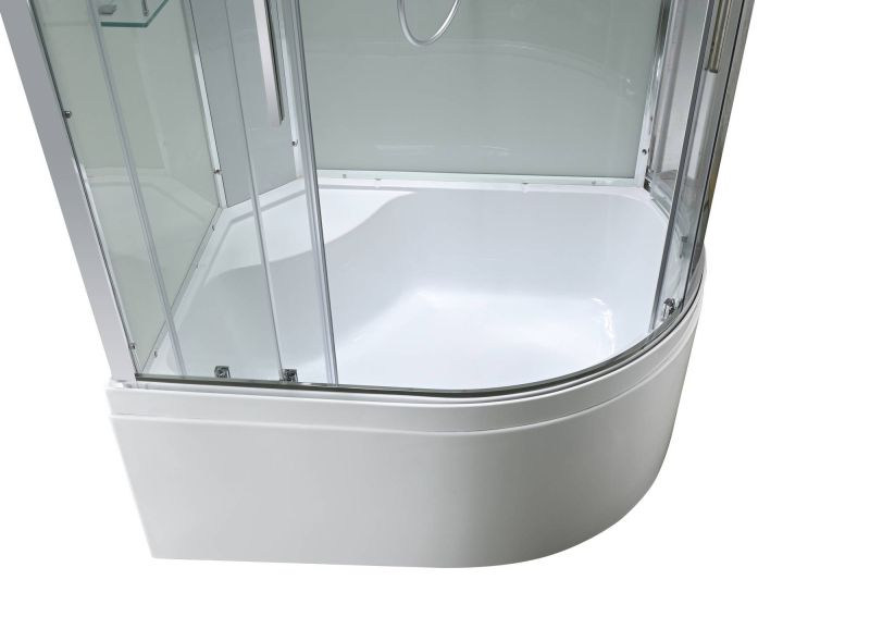Стильная душевая кабина AvaCan сочетает в себе высокую функциональность, практичность и надежность. При изготовлении применяется безопасное закаленное стекло, надежно фиксируемое алюминиевым профилем. Профиль сделан из алюминия повышенной прочности. Сборка без силикона (увеличивает срок службы, защищает от протечек), внутренняя сборка (облегчает установку и ревизию; позволяет установить в ограниченном пространстве и обойтись без демонтажа других сантехнических приборов), смеситель резьбовой (без хомутов). Съемный экран поддона (позволяет осуществлять подключение и ревизию сифона).Двойные металлические ролики дверей (распределение нагрузки на два ролика, увеличивают срок службы). Душевая штанга(позволяет регулировать по высоте ручную лейку), ручная арома-лейка с витамином С (картридж в комплекте,есть возможность замены или удаления картриджа), полочки(из стекла, с ограничителем), сифон с гидрозатвором.