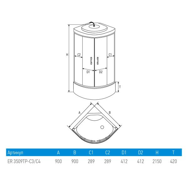 Душевая кабина Erlit Comfort ER3509TP-C3-RUS (900x900x2150) купить
