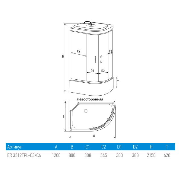 Душевая кабина Erlit Comfort ER3512TPL-C3-RUS (1200x800x2150) купить