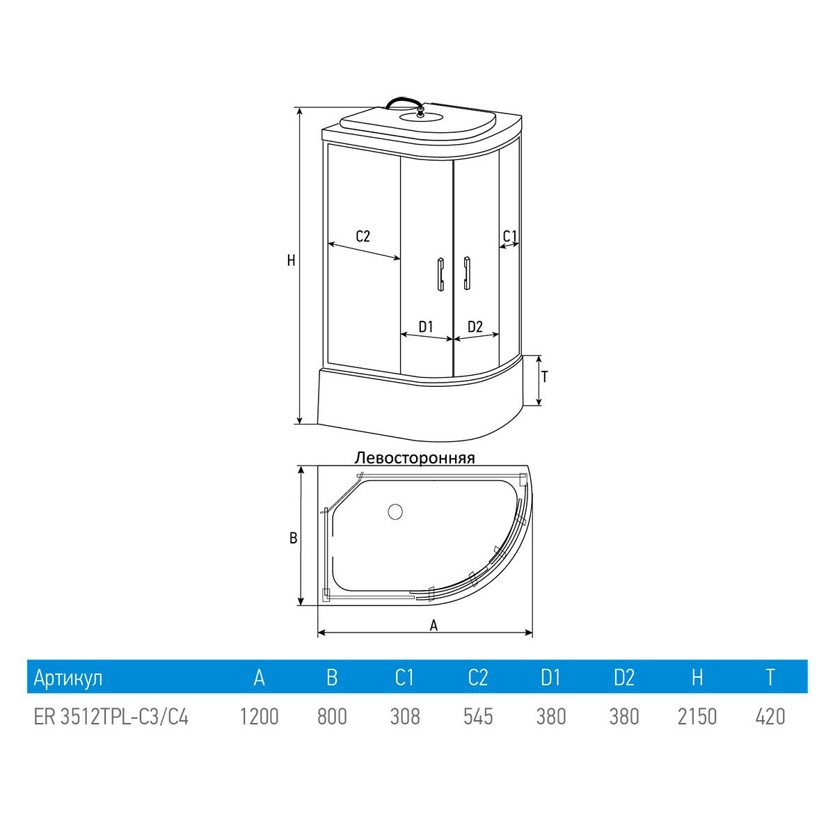 Душевая кабина Erlit Comfort ER3512TPL-C4-RUS (1200x800x2150) купить