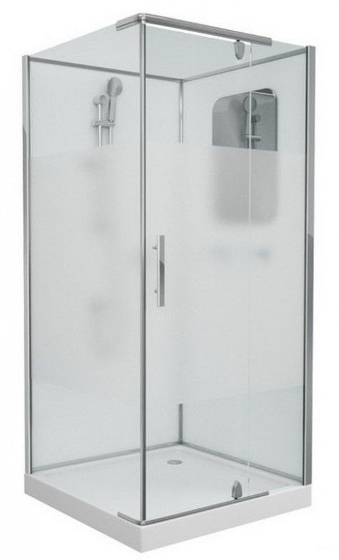 Стенки и распашная дверь кабины изготовлены из безопасного закалённого стекла с широкой матовой полосой. На стекло одной из задних стенок нанесен особый сплав, амальгама на основе серебра, за счёт чего она имеет зеркальную поверхность. Такое зеркало безопасно, долговечно и не подвержено коррозии.