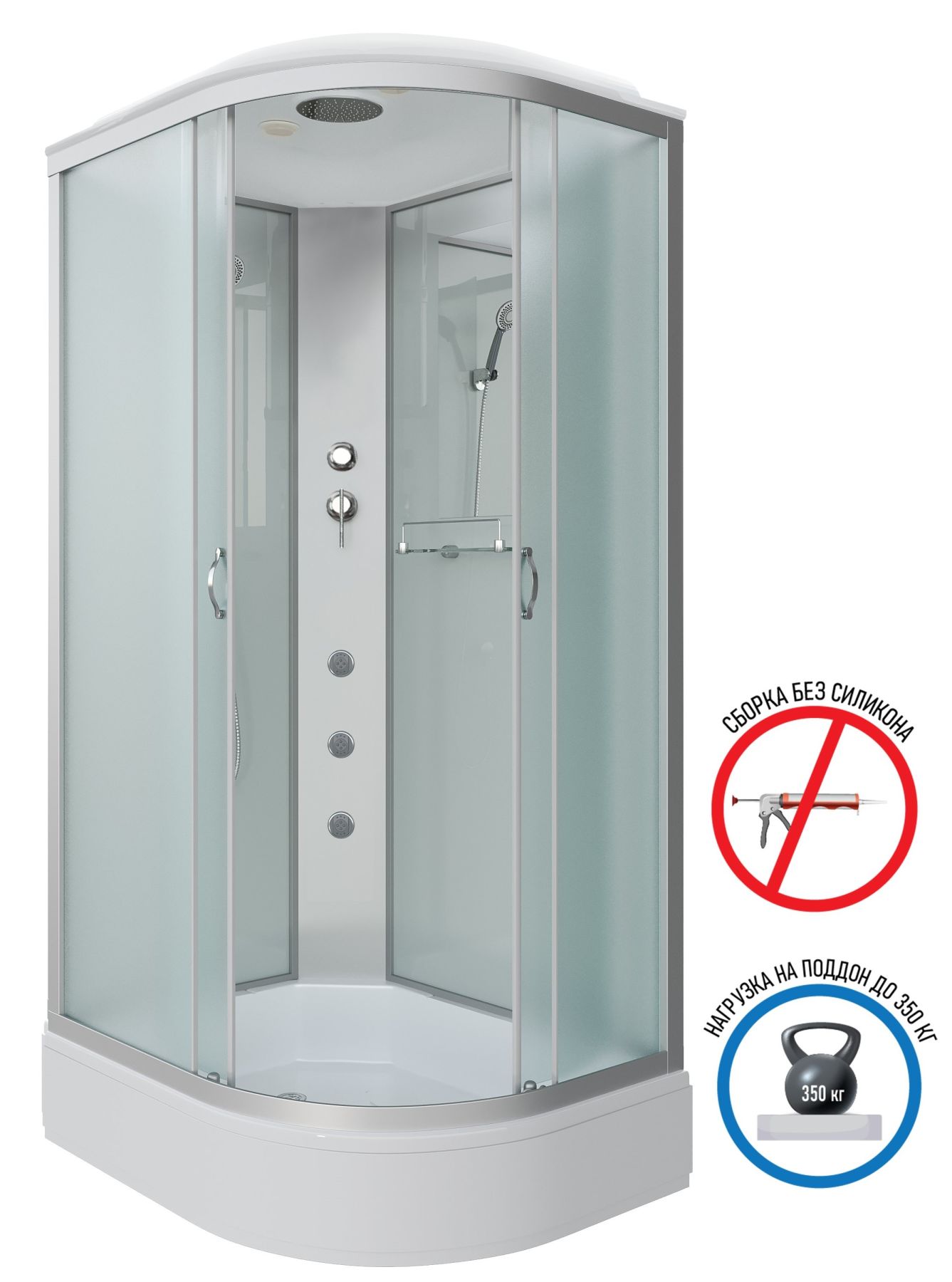Душевая кабина Niagara NG-33084-14LG с гидромассажем 100x80см серебро/матовое купить