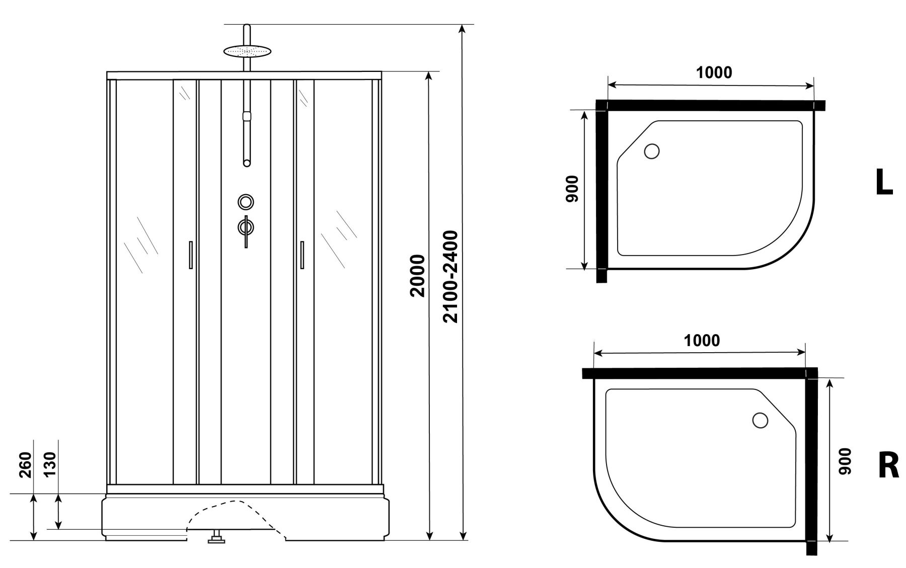 - Размеры (ДхШхВ) 100x90х210-240