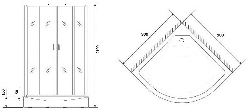 - Форма кабины четверть круга