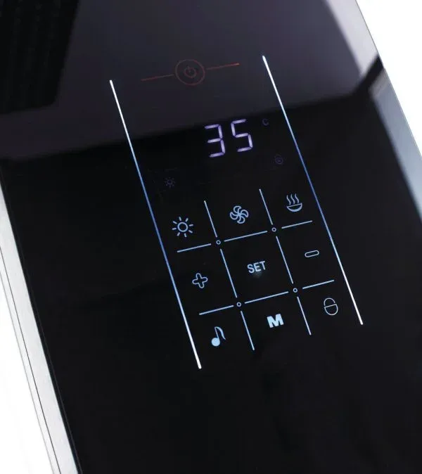 - Внешняя, электронная панель управления: включение душевой кабины, радио FM, полноформатная LED подсветка потолка, паровая сауна