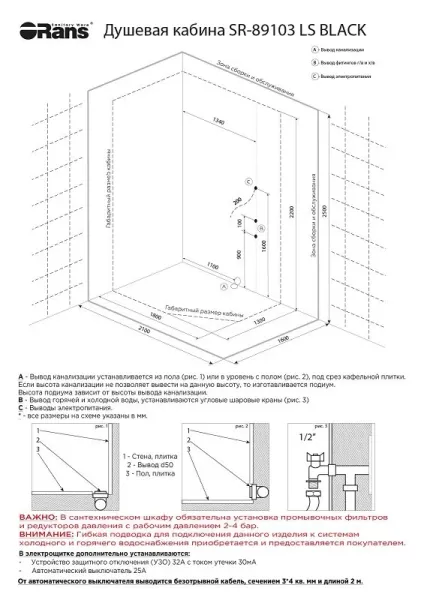 Душевая кабина Orans SR-89103RS 89103RBLH 180x130 см профиль чёрный стекло прозрачное Душевая кабина Orans SR-89103RS 89103RBLH 180x130 см профиль чёрный стекло прозрачное Казань 920250.00 {old_price} ORANS