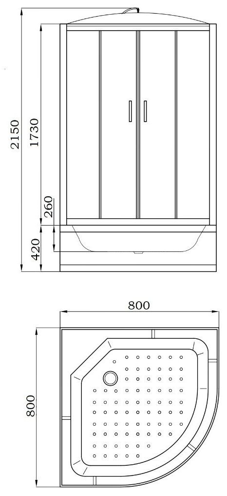 МОНТАЖ БЕЗ СИЛИКОНАКабина EF821 душевая PARLY (80х80х215)Размер: 80х80х215 смКомпактная кабина подойдет для небольших ванных комнат. Светлая модель практична и проста в уходе.Достоинства: