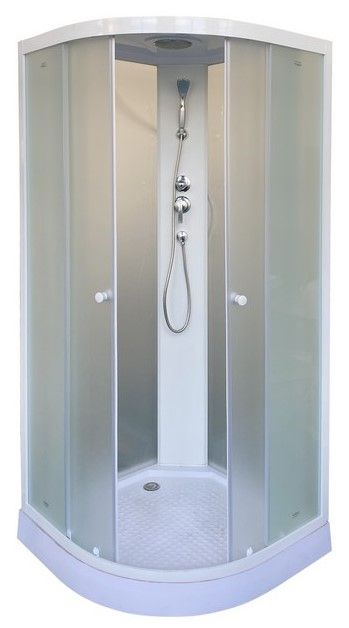 МОНТАЖ БЕЗ СИЛИКОНАКабина EF931 душевая PARLY (90х90х215)Размер: 90х90х210 смБюджетная компактная кабина – отличный выбор для маленькой ванной комнаты и дачи. Светлая кабина визуально расширяет пространство, а полукругла форма экономит полезную площадь в санузле.Достоинства: