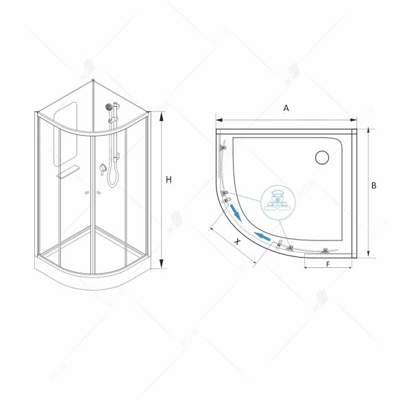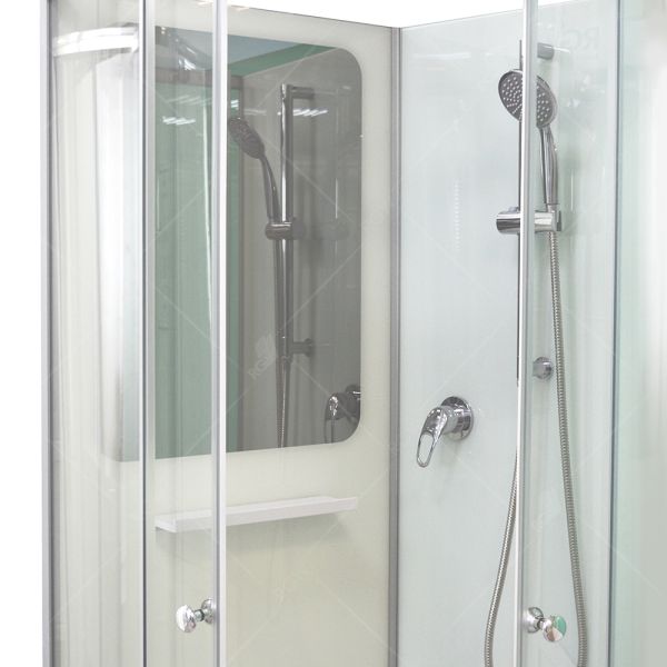 Для изготовления душевых кабин и ограждений используется закаленное ударопрочное стекло, специальное покрытие Easy Clean, которое препятствует образованию налета.