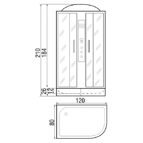 ~ крыша ~ верхний душ ~ верх. свет ~ динамик ~ вентилятор ~ цент.стойка ~ пульт упр-я ~ радио ~ телефон ~ смеситель с переключ. режимов ~ 3 г/м форс. ~ штанга ~ ручной душ 3х режимн. ~ зеркало ~ полочка ~ поддон п/кр. низ.с/съем. экр.(Н=26см) ~ сифон