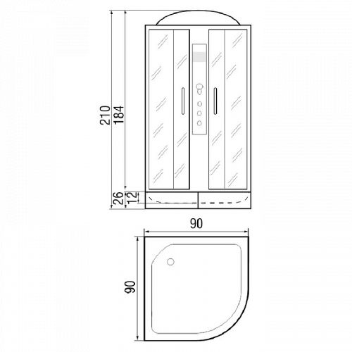 ~ крыша ~ верхний душ ~ верх. свет ~ динамик ~ вентилятор ~ цент.стойка ~ пульт упр-я ~ радио ~ телефон ~ смеситель с переключ. режимов ~ 3 г/м форс. ~ штанга ~ ручной душ 3х режимн. ~ зеркало ~ полочка ~ поддон п/кр. низ.с/съем. экр.(Н=26см) ~ сифон